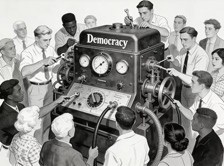 A friend said to me recently that democracy doesn’t work. That what we’re living through now proves it. That maybe the mistake was letting everyone vote. Maybe we’d be better off with fewer elections, fewer voices, more “responsible” hands on the wheel.
